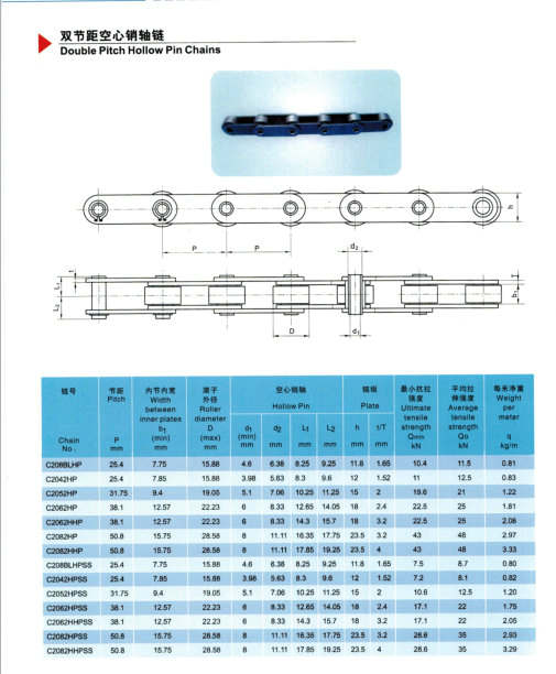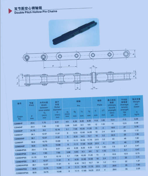 4, C216A C216AL C2080 C2082 C216AH C216AHL C2080H C2082H 節(jié)距50.8毫米的雙節(jié)距輸送直板大滾子或者小滾子輸送鏈條,加厚鏈條。俗稱2寸鏈條。