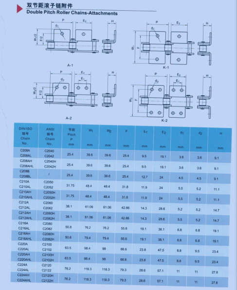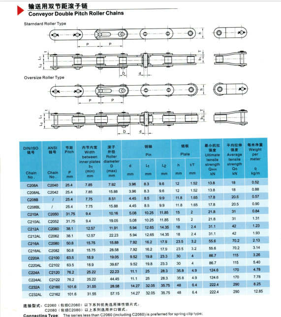 1,C208A C208AL C208B C208BL C2042 C2040節(jié)距25.4mm,俗稱1寸直板輸送雙節(jié)距大滾子,小滾子鏈條。