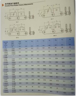 帶直立板鏈條 節(jié)距50.8毫米的雙節(jié)距單孔輸送鏈條 給聊城張經(jīng)理制造的C2082的鏈條 節(jié)距50.8毫米,直立板上沖孔直徑是11.0毫米,直立板的寬度是38.1毫米,銷軸的中心到彎板上面的距離是37.4毫米,銷軸的中心到直板沖孔的距離是22.2毫米,價(jià)格是45元/米 共200米。工期3天。