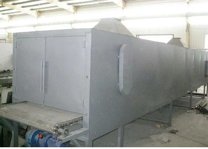 網(wǎng)帶式烘干機(jī)將所要處理的物料通過適當(dāng)?shù)匿伭蠙C(jī)構(gòu),如星型布料器,擺動(dòng)帶,粉碎機(jī)或造粒機(jī),分布在輸送帶上,輸送帶通過一個(gè)或者幾個(gè)加熱單元組成的通道,每個(gè)加熱單元均配有加熱和循環(huán)系統(tǒng),每一個(gè)通道有一個(gè)或幾個(gè)排濕系統(tǒng),在輸送帶通過時(shí),熱空氣從下往上通過輸送帶上的物料,從而使得物料均勻干燥?;竟ぷ髟硎切枰娓傻奈锪贤ㄟ^提升機(jī)提升到高處,物料北布料器,均勻的分布在烘干機(jī)最上面的一層輸送帶上,輸送帶把物料從機(jī)尾輸送到機(jī)頭,然后物料滑落到第二層,物料從機(jī)頭又被輸送到機(jī)尾,物料又滑落到第三層,物料從機(jī)尾再次被輸送到機(jī)頭,如此反復(fù)的輸送,物料在被輸送的同時(shí)進(jìn)行熱風(fēng)烘干,物料最后被最下面的一層不銹鋼網(wǎng)帶輸送出烘干機(jī),這時(shí)物料被烘干到客戶需要的程度。然后進(jìn)行輸送降溫或者立即裝袋處理。網(wǎng)帶烘干機(jī)是一種連續(xù)的,批量生產(chǎn)的帶式干燥設(shè)備,主要有電加熱,燃煤加熱,蒸汽加熱,導(dǎo)熱油加熱,燃天然氣加熱,熱風(fēng)加熱等等。其主要原理是將物料均勻的平鋪在網(wǎng)帶上,網(wǎng)帶采用12-60目的鋼絲網(wǎng)帶,由傳動(dòng)裝置拖動(dòng)在干燥機(jī)內(nèi)往復(fù)運(yùn)行,熱風(fēng)在物料間穿流而過,水蒸氣從排濕孔中排出,從而達(dá)到干燥的目的,箱體長(zhǎng)度有標(biāo)準(zhǔn)段組合而成,為了節(jié)約場(chǎng)地,可將烘干機(jī)分成多層式,常見的有二室三層,二室五層,長(zhǎng)度4-60米,有效寬帶0.6-3.0米。網(wǎng)帶烘干機(jī)由保溫隧道,網(wǎng)帶,傳動(dòng)裝置,進(jìn)風(fēng)出風(fēng)管道,加熱源,鼓風(fēng)機(jī),排濕風(fēng)機(jī)等。網(wǎng)帶的線速視物料的種類和含水量而定。風(fēng)流向采用負(fù)壓,多孔進(jìn)風(fēng)保證烘干面積,風(fēng)流風(fēng)速分布均勻,提高烘干效果。要想得到最佳的烘干效果和合適的產(chǎn)量,物料的含水量和網(wǎng)帶的線速度,風(fēng)流量和風(fēng)溫,都得必須適當(dāng),合理,有機(jī)結(jié)合。