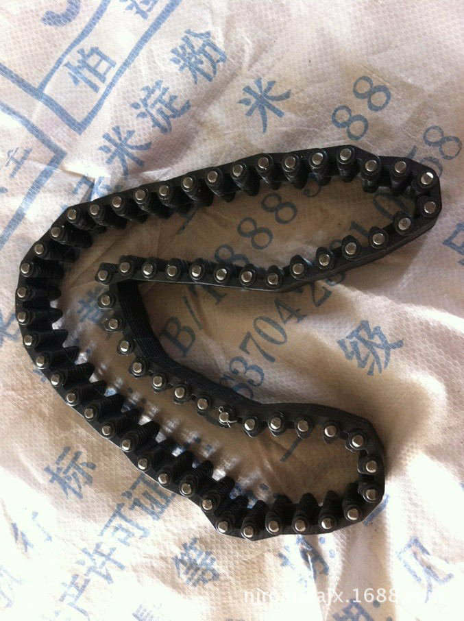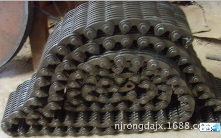 齒形鏈條簡介:也叫無聲鏈,傳動鏈條,齒型鏈條,英文Silent chain,屬于傳動鏈條的一種形式。我國的國家標準:GB/TB10855-2003《齒形鏈和鏈輪》。齒形鏈是由一系列的齒鏈板和導板交替裝配且銷軸或組合的鉸接原件連接而成。根據(jù)導向形式可分為:外導齒形鏈,內(nèi)導齒形鏈或雙內(nèi)導齒形鏈。