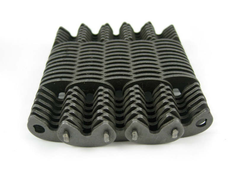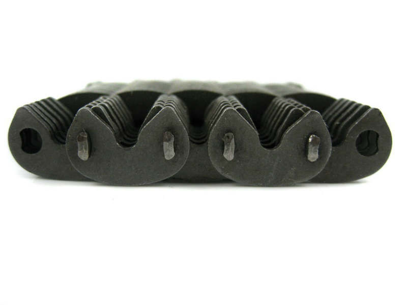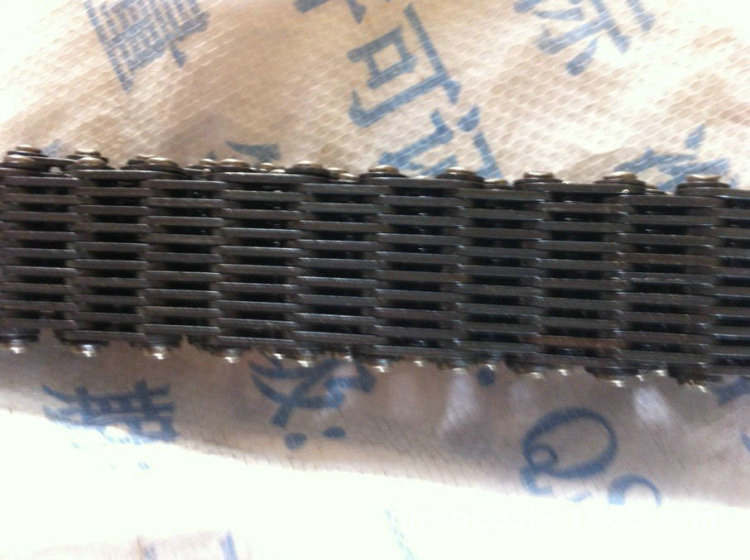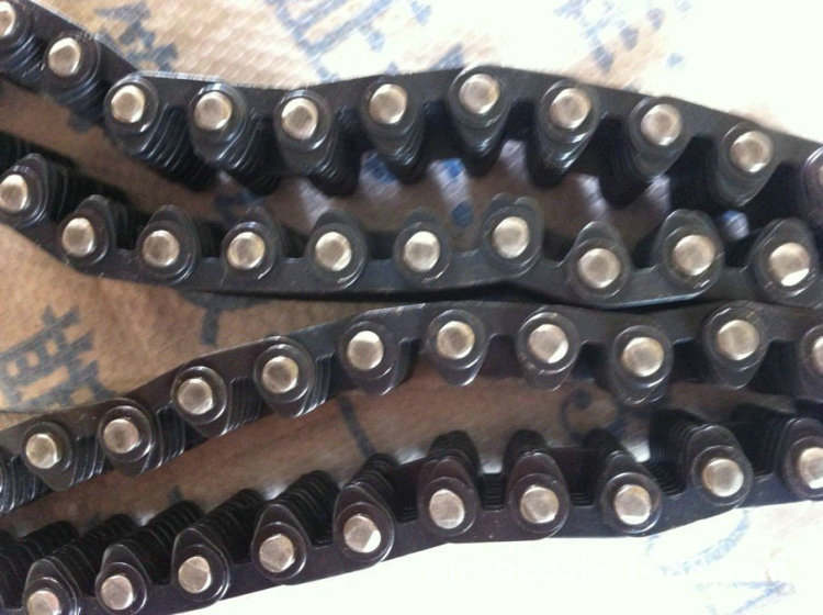 1,噪音低。齒形鏈條通過工作鏈板與鏈輪齒的漸開線齒形進行嚙合傳遞動力。比滾子鏈和套筒鏈相比其多邊效應明顯降低,沖擊力小,運轉(zhuǎn)平穩(wěn),嚙合噪音較低。