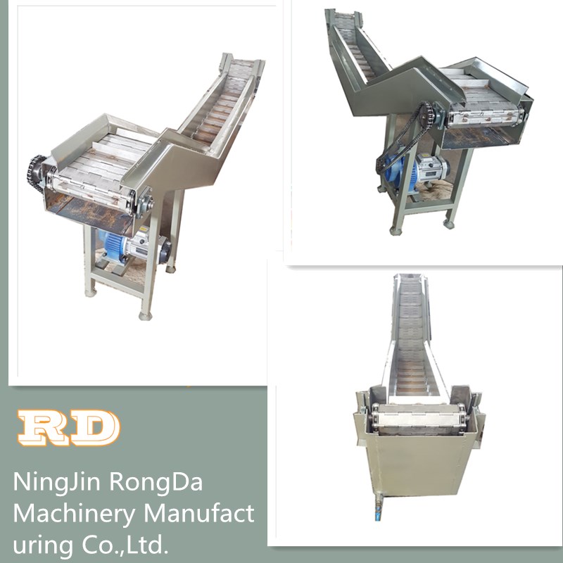 鏈板輸送機:又叫鏈板傳送機,鏈板線,鏈板傳送帶。是一種利用循環往復的鏈條作為牽引動力,以金屬板作為輸送承載體的一種輸送機械設備。國內市場上有兩種鏈板輸送機,一種是用鏈條,支軸和金屬板組成的輸送鏈板做成的輸送機;一種是用帶彎板的鏈條和金屬板組成的金屬板輸送帶做成的鏈板輸送機,另一種是平頂鏈鏈板輸送機。