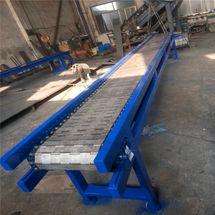 給客戶定做的鍛件設備上用的鏈板輸送機,長5.5的,寬55公分,高80公分,速度一米一秒,可調速的。