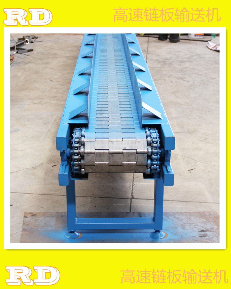 9, 無(wú)聲高速鏈板輸送機(jī)具備了鏈條輸送機(jī)的高速,也具備了鏈板輸送機(jī)的穩(wěn)定性,也具備了鏈板的無(wú)縫隙不卡料。