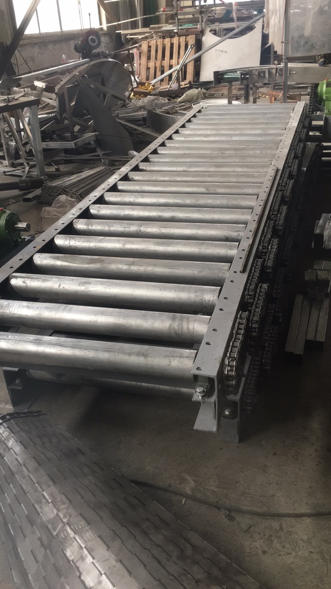 輸送鍛件的動力滾筒輸送機。滾筒的輸送機用的范圍越來越廣了,熱件輸送也能用滾筒的了。用動力的,輸送速度很快。