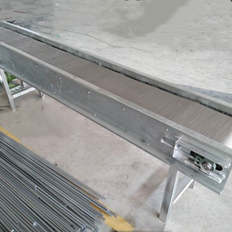 由左右交替的網條通過四根直串條聯結而成,網帶具有密度高,網孔細,運行靈活的特點,它對材料和編織技術要求高,此網帶適合于細小承載物的輸送線。