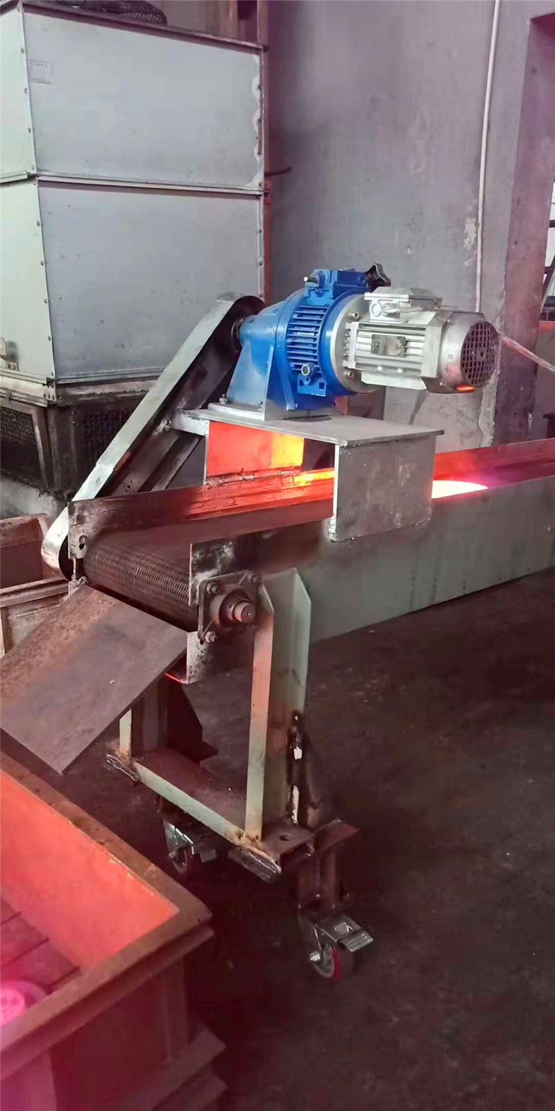 無聲齒形鏈帶鍛件用輸送機(jī)。用齒形鏈帶輸送帶來輸送鍛件也是可以的,它的優(yōu)點(diǎn)是無聲 噪音小 輸送速度不超過25米/分鐘,能夠滿足8-11秒出1只產(chǎn)品的要求。