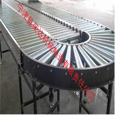 按布置形式可分為水平輸送滾筒線,傾斜輸送滾筒線和轉(zhuǎn)彎滾筒線。