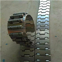 鏈板網(wǎng)帶非常堅固,由不銹鋼鏈條驅(qū)動,采用不銹鋼板材生產(chǎn),適合用于輸送細小的高密度物件,輸送過程中運轉(zhuǎn)平穩(wěn),安裝更換方便,使用壽命較長。用于中等和大負荷輸送。鋼板彎曲形成合葉,使用支軸將合葉和鏈條串在一起。兩端的鏈條可以使用開口銷或者墊圈來固定,使用開口銷方便拆卸,維護方便。鏈板大概分:1,按照材質(zhì)分:碳鋼鏈板輸送帶,鍍鋅鏈板輸送帶,不銹鋼201鏈板輸送帶,不銹鋼304鏈板輸送帶,其他不銹鋼鏈板輸送帶。2,根據(jù)外形來分:平鏈板輸送帶,帶橫擋板鏈板輸送帶,帶擋邊鏈板輸送帶,沖孔鏈板輸送帶(圓孔,長條孔),帶凸起鏈板輸送帶。3,根據(jù)輸送形式分:直輸鏈板輸送帶,拐彎的鏈板輸送帶。4,合頁鏈板輸送帶,排屑鏈板輸送帶,槽鋼鏈板輸送帶。5,雙節(jié)距鏈條鏈板帶,精密滾子鏈條鏈板輸送帶。
