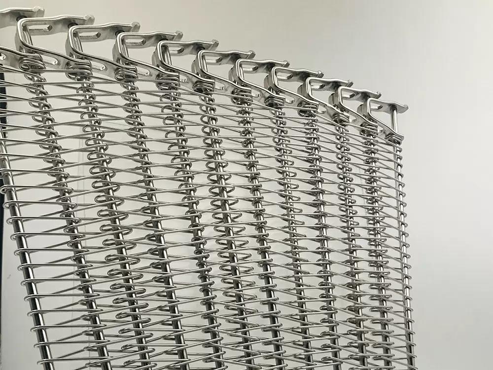 螺旋網(wǎng)采用高抗拉不銹鋼絲經(jīng)進(jìn)口數(shù)控網(wǎng)帶成型機(jī)加工生產(chǎn),網(wǎng)面強(qiáng)硬耐用,不易變形。網(wǎng)面平整,焊接牢固,轉(zhuǎn)彎性能好,可以實(shí)現(xiàn) 180度和360度的轉(zhuǎn)彎??梢猿休d較重的壓力和拉力,維修和拆卸極為方便,可以根據(jù)應(yīng)用設(shè)計(jì)網(wǎng)面有絲網(wǎng),網(wǎng)面無絲網(wǎng),網(wǎng)帶兩側(cè)加裝擋板或者網(wǎng)帶中間加裝鏈條。
