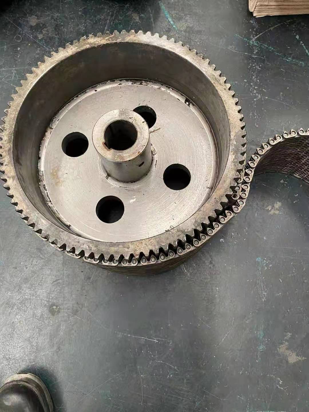 無聲鏈 齒形鏈輪 無聲鏈:也叫齒形鏈條,采用無聲齒形鏈輪帶動運轉傳動。寧津縣榮達機械制造有限責任公司定做各種無聲齒形鏈條,無聲齒形鏈輪。我們根據客戶自己的情況,客戶選型成功,我們根據客戶的數據非標定做各種齒形鏈條和無聲齒形鏈輪。齒形鏈條節(jié)距4.7625,6.35 9.525 12.7 15.875 19.05 25.4 31.75 38.1毫米的鏈條都能做,無聲齒形鏈輪根據客戶的齒數和外徑,內孔,鍵槽定做。無聲齒形鏈條的獨特優(yōu)點:高速,無噪音,高承載傳動能力,轉矩大等等優(yōu)點,逐漸取代精密滾子鏈條和同步帶。