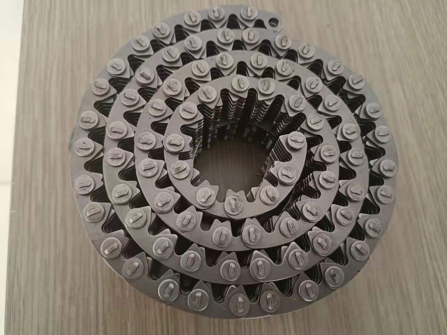 高速齒形鏈(哈瓦鏈)對于傳遞功率為50~6000馬力,超過每分鐘3000轉的中至高速,要求設計緊湊的應用場合,它是理想的傳動鏈。哈瓦鏈是一種高精度齒形鏈,兼有皮帶的平穩(wěn)性和鏈條傳動緊湊性、經(jīng)濟性與長的使用壽命。其特點在于通過鉸鏈的銷軸和擺瓦間的滾動作用減少磨擦和實現(xiàn)節(jié)距伸長,其結果是傳遞功率能力的有效增長和減少多邊形效應的危害。鏈板是經(jīng)過噴丸和預應力處理,從而有較大的承載能力。具有三倍于無聲鏈的功率能力,具有較高的速度范圍,在滾子鏈工作能力急劇下降的高速區(qū),哈瓦鏈的能力卻是不斷提高。所以哈瓦鏈在許多場合具有無可爭辯的,令人矚目的優(yōu)點。適用于所有應用高速原動機,例如柴油機和,氣輪機的功率傳動等。