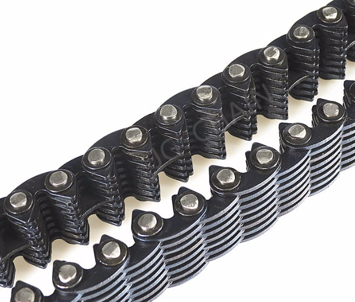 榮達生產雙軸式哈瓦齒形無聲鏈條 高速傳動鏈條 山東齒形鏈條。哈瓦齒形無聲鏈條是高速的,超靜音的,達到50米/秒,很多的原動機和進口設備上會用的到,是一種高精度的齒形鏈條。