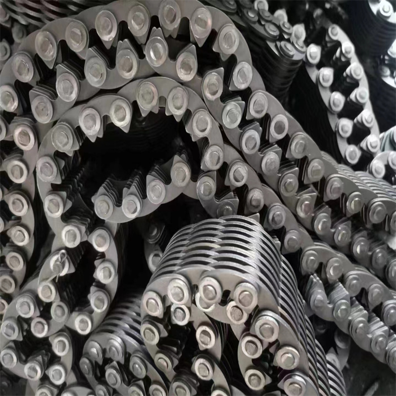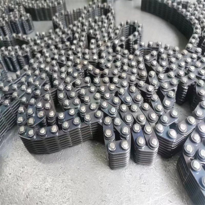 無(wú)聲鏈 齒形鏈輪 無(wú)聲鏈:也叫齒形鏈條,采用無(wú)聲齒形鏈輪帶動(dòng)運(yùn)轉(zhuǎn)傳動(dòng)。寧津縣榮達(dá)機(jī)械制造有限責(zé)任公司定做各種無(wú)聲齒形鏈條,無(wú)聲齒形鏈輪。我們根據(jù)客戶自己的情況,客戶選型成功,我們根據(jù)客戶的數(shù)據(jù)非標(biāo)定做各種齒形鏈條和無(wú)聲齒形鏈輪。齒形鏈條節(jié)距4.7625,6.35 9.525 12.7 15.875 19.05 25.4 31.75 38.1毫米的鏈條都能做,無(wú)聲齒形鏈輪根據(jù)客戶的齒數(shù)和外徑,內(nèi)孔,鍵槽定做。無(wú)聲齒形鏈條的獨(dú)特優(yōu)點(diǎn):高速,無(wú)噪音,高承載傳動(dòng)能力,轉(zhuǎn)矩大等等優(yōu)點(diǎn),逐漸取代精密滾子鏈條和同步帶。