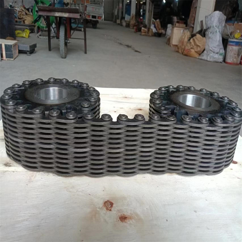 無聲鏈 齒形鏈輪 無聲鏈:也叫齒形鏈條,采用無聲齒形鏈輪帶動運轉(zhuǎn)傳動。寧津縣榮發(fā)齒輪廠定做各種無聲齒形鏈條,無聲齒形鏈輪。我們根據(jù)客戶自己的情況,客戶選型成功,我們根據(jù)客戶的數(shù)據(jù)非標定做各種齒形鏈條和無聲齒形鏈輪。齒形鏈條節(jié)距4.7625,6.35 9.525 12.7 15.875 19.05 25.4 31.75 38.1毫米的鏈條都能做,無聲齒形鏈輪根據(jù)客戶的齒數(shù)和外徑,內(nèi)孔,鍵槽定做。無聲齒形鏈條的獨特優(yōu)點:高速,無噪音,高承載傳動能力,轉(zhuǎn)矩大等等優(yōu)點,逐漸取代精密滾子鏈條和同步帶。