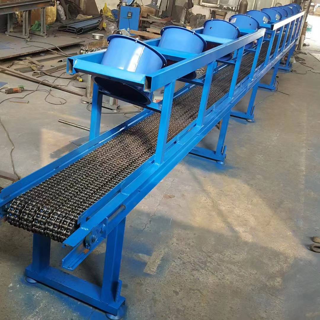 輸送鏈 鍛造自動化輸送鏈 傳送鍛壓輸送機,鍛打輸送機,熱鍛紅沖輸送機,鍛造熱處理淬火提升機,熱鍛造件降溫風(fēng)冷輸送機 鏈條輸送機 鏈板輸送機 板式提升機 鏈條片輸送機 帶風(fēng)機降溫輸送機 滾筒輸送機 熱鍛造件輸送機:是用于鍛造行業(yè),用來輸送鍛造件的一種傳送帶,可以用于輸送圓鋼,加熱爐出來的紅毛坯,紅熱方鋼圓鋼,用于各個鍛壓機之間鍛件的輸送,用于水槽油槽鍛造件的熱處理淬火,用于熱鍛造件的風(fēng)冷水冷降溫輸送。鍛造生產(chǎn)線的各個輸送傳送。 功能特點 1.速度快慢可調(diào),有無極調(diào)速電機和變頻器控制柜控制速度快慢,操作簡單 2,輸送速度快,精密鏈條適合高速傳送,耐磨,適合長時間高速運轉(zhuǎn)傳送 3,輸送機可連續(xù)輸送,可間歇性輸送。 4,輸送機的寬度根據(jù)被輸送的金屬件的大小靈活的設(shè)計輸送機的寬度 長度根據(jù)輸送的距離來設(shè)計。5,輸送機可以做成水平直輸送的,提升爬坡輸送的。第一集:輸送鏈 耐高溫傳送鏈條 鍛造輸送鏈 鍛造輸送機 鍛造輸送鏈 冷卻鏈 降溫輸送鏈 熱鍛造輸送鏈 鍛造輸送鏈具有耐高溫、不變形等特點,且重量輕而強度大,耐磨性好,抗沖擊力強,維護性好等優(yōu)勢。榮達擁有單排輸送鏈、雙排輸送鏈、串桿輸送鏈、板鏈輸送鏈、網(wǎng)鏈輸送鏈等不同形態(tài)的產(chǎn)品。根據(jù)不同類型的產(chǎn)品,工藝方式的不同,滿足客戶的各種不同應(yīng)用場景需求。 榮達機械可以根據(jù)客戶的使用要求和現(xiàn)場安裝的需要,設(shè)計、制造各種規(guī)格的產(chǎn)品和設(shè)備,為客戶提供合理價格的優(yōu)質(zhì)產(chǎn)品。1,耐高溫2,耐磨性好 3,運行穩(wěn)定4,抗沖擊力強 5,類型多并可定制 方春領(lǐng) 13210447625 18315825408