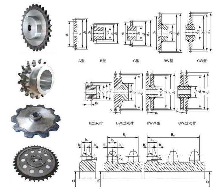 鏈輪介紹:鏈輪是一種帶嵌齒式扣鏈齒的輪子,用以與節(jié)鏈環(huán)或纜索上節(jié)距準(zhǔn)確的塊體相嚙合。鏈輪被廣泛應(yīng)用于化工、紡織機(jī)械、自動(dòng)扶梯,木材加工,立體停車庫(kù),農(nóng)業(yè)機(jī)械,食品加工、儀表儀器、石油等行業(yè)的機(jī)械傳動(dòng)等。