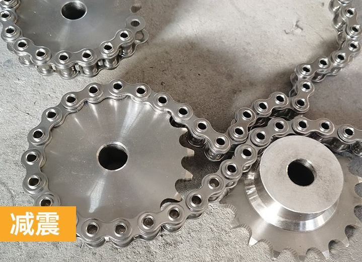 按照用途不同,鏈可分為起重鏈、牽引鏈和傳動(dòng)鏈三大類。起重鏈主要用于起重機(jī)械中提起重物,其工作速度v≤0.25m/s;牽引鏈主要用于鏈?zhǔn)捷斔蜋C(jī)中移動(dòng)重物,其工作速度v≤4m/s;傳動(dòng)鏈用于一般機(jī)械中傳遞運(yùn)動(dòng)和動(dòng)力,通常工作速度v≤15m/s。傳動(dòng)鏈有齒形鏈和滾子鏈兩種。齒形鏈?zhǔn)抢锰囟X形的鏈片和鏈輪相嚙合來實(shí)現(xiàn)傳動(dòng)的,齒形鏈傳動(dòng)平穩(wěn),噪聲很小,故又稱無聲鏈傳動(dòng)。齒形鏈允許的工作速度可達(dá)40m/s,但制造成本高,重量大,故多用于高速或運(yùn)動(dòng)精度要求較高的場合。用于動(dòng)力傳動(dòng)的鏈主要有套筒滾子鏈和齒形鏈兩種。套筒滾子鏈由內(nèi)鏈板、外鏈板、套筒、銷軸、滾子組成。外鏈板固定在銷軸上,內(nèi)鏈板固定在套筒上,滾子與套筒間和套筒與銷軸間均可相對(duì)轉(zhuǎn)動(dòng),因而鏈條與鏈輪的嚙合主要為滾動(dòng)摩擦。套筒滾子鏈可單列使用和多列并用,多列并用可傳遞較大功率。套筒滾子鏈比齒形鏈重量輕、壽命長、成本低。在動(dòng)力傳動(dòng)中應(yīng)用較廣。齒形鏈?zhǔn)怯娩N軸將多對(duì)具有60°角的工作面的鏈片組裝而成。鏈片的工作面與鏈輪相嚙合。為防止鏈條在工作時(shí)從鏈輪上脫落,鏈條上裝有內(nèi)導(dǎo)片或外導(dǎo)片。嚙合時(shí)導(dǎo)片與鏈輪上相應(yīng)的導(dǎo)槽嵌合。齒形鏈傳動(dòng)平穩(wěn),噪聲很小,故又名無聲鏈,常用于高速傳動(dòng)。套筒滾子鏈和齒形鏈鏈輪的齒形應(yīng)保證鏈節(jié)能自由進(jìn)入或退出嚙合,在嚙入時(shí)沖擊很小,在嚙合時(shí)接觸良好。