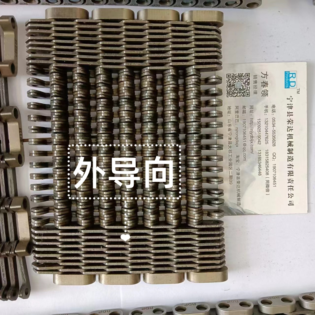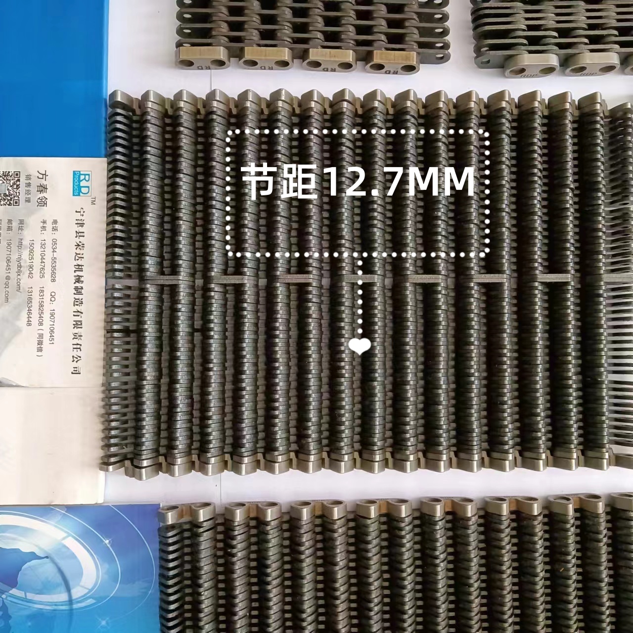 1.無聲齒形鏈帶:一種金屬輸送帶,采用鏈條片和銷軸于墊圈做成的輸送用傳送帶,外形寬度非標(biāo)定做也有好多規(guī)格的現(xiàn)貨,鏈帶是用在玻璃廠輸送玻璃瓶罐器皿日用玻璃器皿的,也有的時候用在其他的輸送機械上,用來輸送其他產(chǎn)品,無聲齒形鏈帶的優(yōu)點就是平整,輸送面平穩(wěn),輸送高腳杯,不會倒瓶,無聲齒形鏈帶用來輸送高溫玻璃制品,用于玻璃機械行列式制瓶機上,橫向輸瓶機,我們現(xiàn)在還研發(fā)了轉(zhuǎn)彎的拐彎的無聲齒形鏈帶,用于縱向拐彎橫向結(jié)合的輸送機上。無聲齒形鏈帶材質(zhì)有碳鋼的 錳鋼的 合金鋼的 ,節(jié)距有12.7毫米 25.4毫米 單軸的和雙軸的,無齒形鏈帶從外形看有內(nèi)導(dǎo)向和外導(dǎo)向,無聲齒形鏈帶有帶保護帽的和不帶保護帽的,無聲齒形鏈帶有帶尖的和不帶尖的。寬度125毫米 150毫米 200毫米 300毫米 常年有現(xiàn)貨 當(dāng)天下單當(dāng)天發(fā)貨 配套的無聲齒形鏈輪有現(xiàn)貨 英文名稱Silent tooth chain ,顏色有發(fā)黑的有本色的。常規(guī)的是5米一件 五米一木箱 ,用于輸送機上一般是每分鐘15米左右